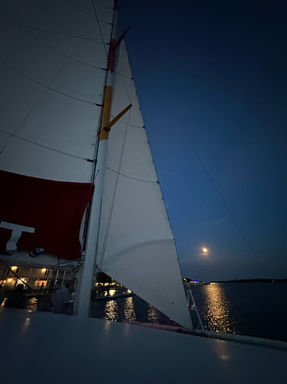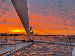 We offer daily sailing excursions departing historic Beaufort for up to 49 passengers on a 45-foot catamaran with cushioned seating, plenty of shade, and a large clean restroom on board.